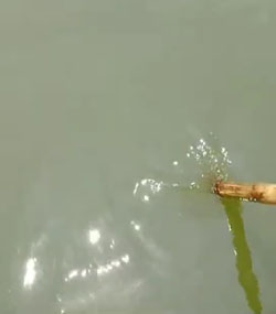 3、间隔2h后底舒安(2亩/袋)全池抛洒,分层明显处着重
